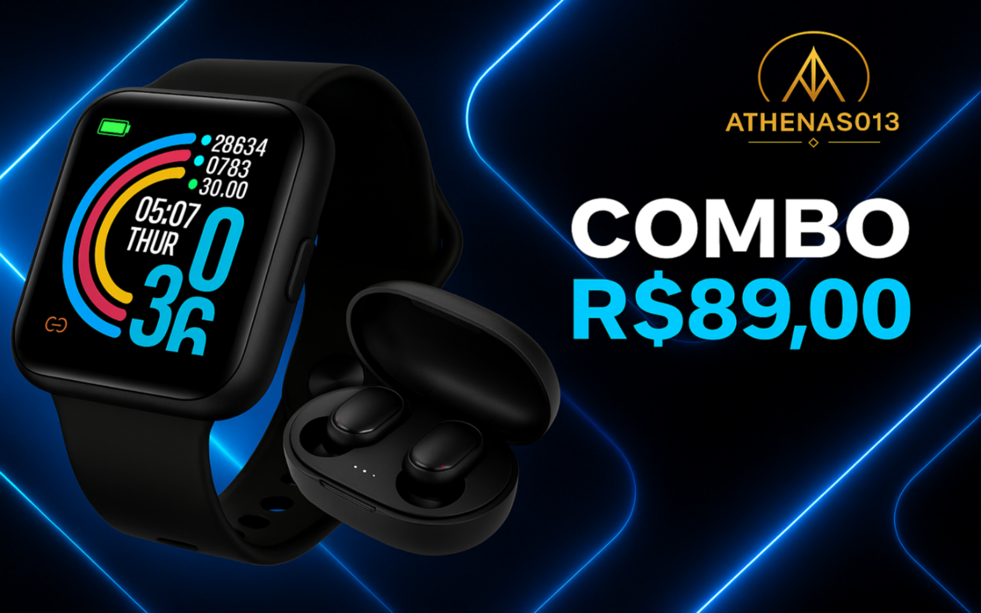 Combo Smartwatch D20 + Fone Bluetooth | Monitoramento, Estilo e Tecnologia em um Só Kit